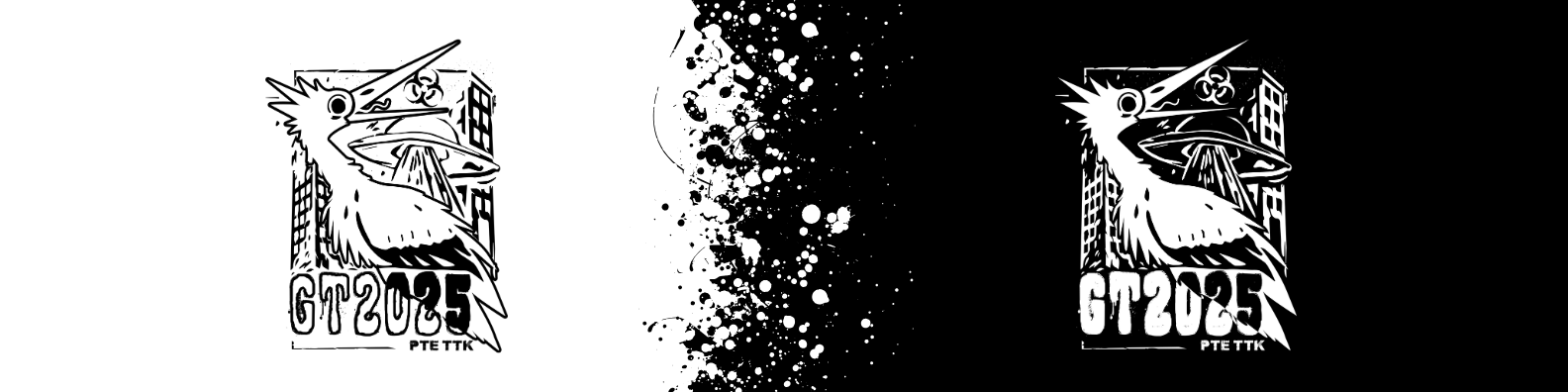 A PTE TTK 2025-ös gólyatábora az "apokalipszis" tematikát kapta, és ennek megfelelően egy erőteljes, vizuálisan is merész arculatot terveztem a teljes eseményhez. A koncepció középpontjába egy karikatúraszerű, zombis stílusban megrajzolt gólya figura került – utalva a friss egyetemistákra, akik épp „túlélő üzemmódban” lépnek be az egyetemi életbe.